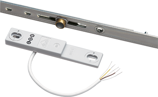 • MVS kontaktne elemente z indikatorjem javljanja (alarm) v primeru odmika krila od okvirja,